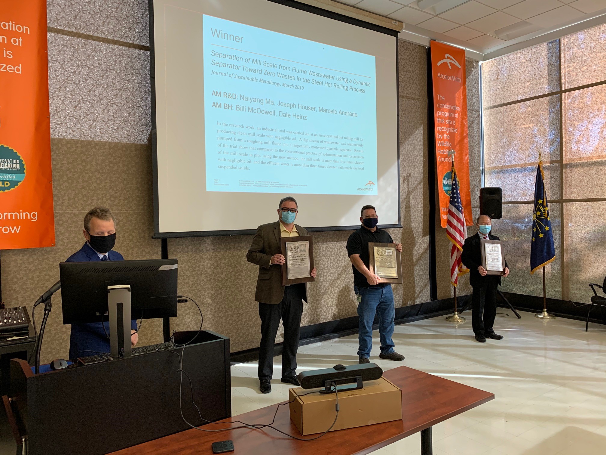 Naiyang Ma, Joseph Houser and Marcelo Andrade of ArcelorMittal USA R&D receiving their 2020 Institute Medal Awards (October 14, 2020)